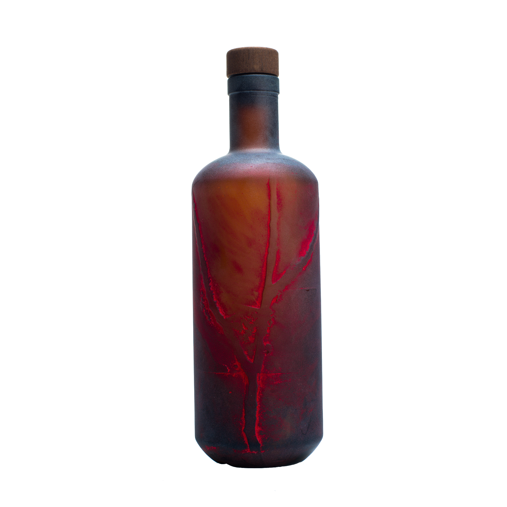 The coordinates 48,17315° N, 15,93936° E mark the place where it all began — the home of the wild cherry tree. Its branches were transferred onto each bottle using sandblasting, then hand-painted with screen-printing ink.