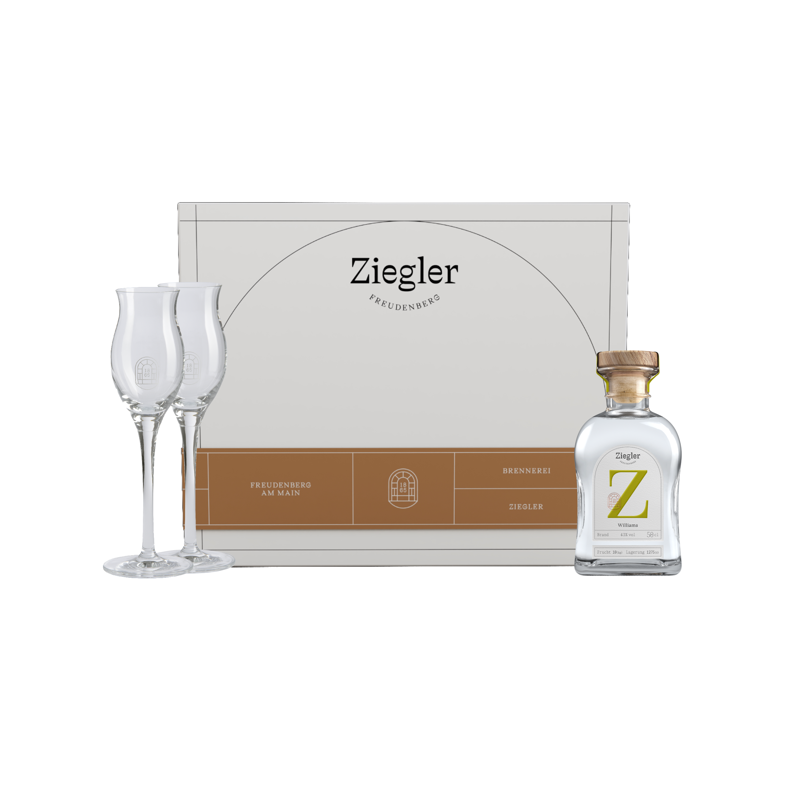 Experience the art of distillation at its finest: the williams pear fruit brandy, presented in an exclusive Ziegler gift box. Two refined digestif glasses in classic tulip shape enhance the development of aromas and allow the noble spirit to unfold to perfection – for a truly exceptional moment of enjoyment.